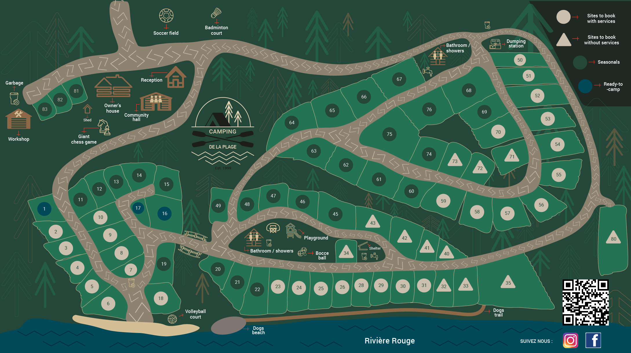 Located in the heart of the Laurentides, on the Rivière Rouge shore, the Camping de la plage will charm you by